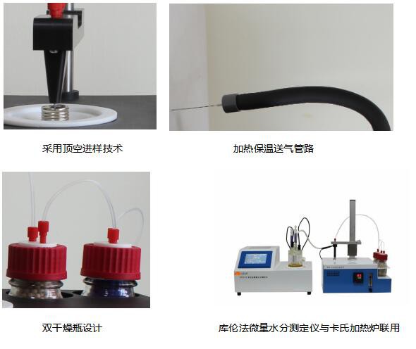 1、采用高精度庫侖法水分測定儀與卡氏加熱爐聯(lián)用,低可以檢測到3μg水,精度達(dá)到ppm級;